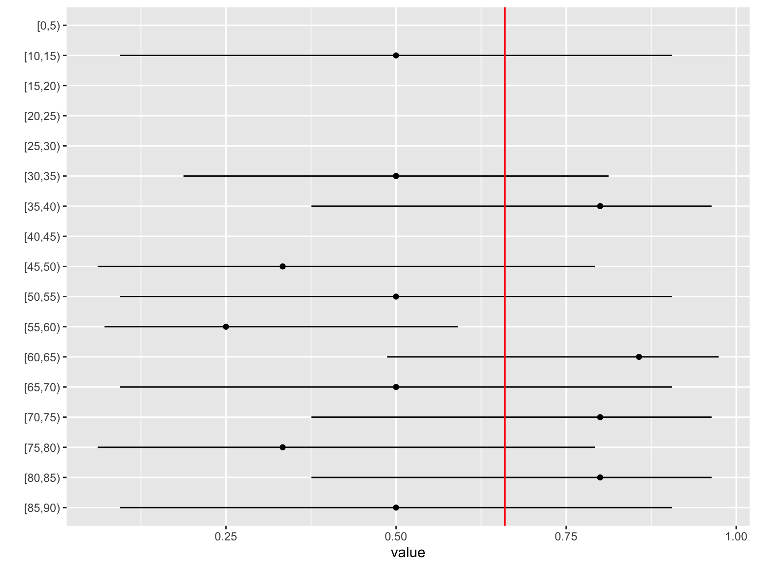 [15,20) | 1 | 2 | 3 | 83 | 152 | 0.546 | 0.333 | 0.0615 | 0.792 | 95% | Wilson |